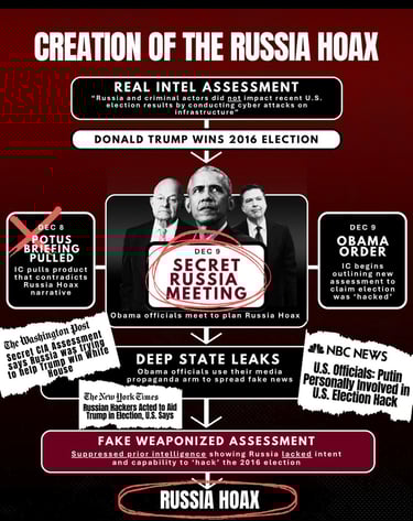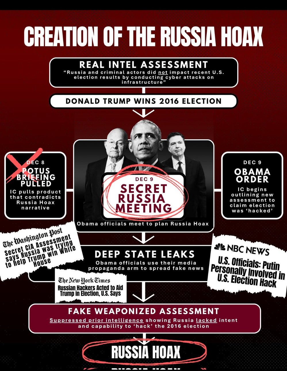 They briefed Barack Obama on Hillary Clinton's plan to tie Trump to Russia collusion lies. It consumed our national discourse for 5 years. It undermined a sitting, duly elected president. It sabotaged administration. It framed a three-star general.