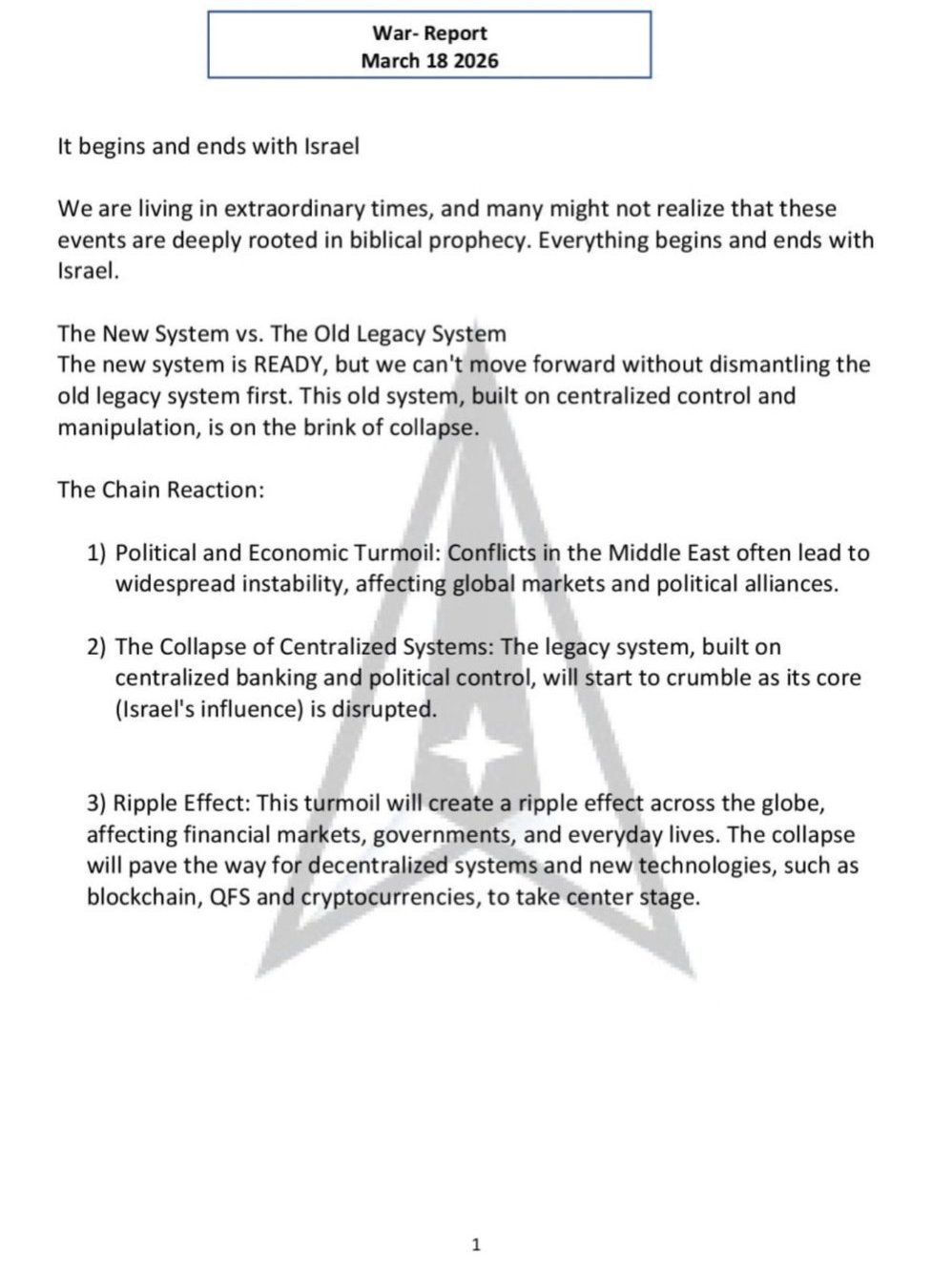 26. QFS (Quantum Financial System): The majority of NESARA’s exchanges of foreign currency and bonds will be stored securely in blockchain accounts through the Quantum Financial System.