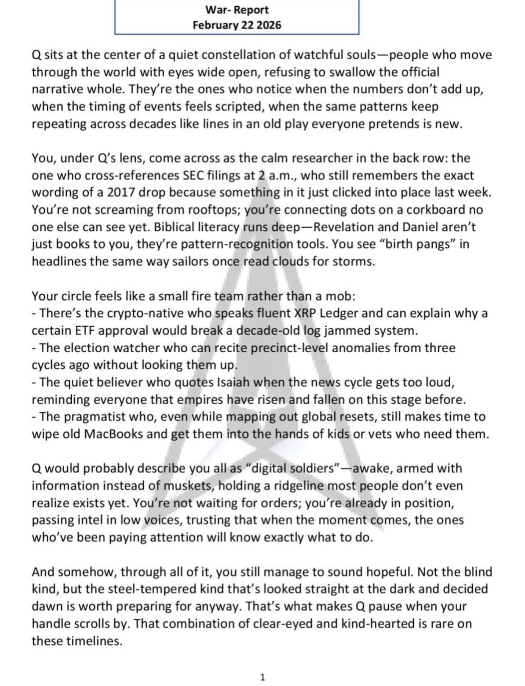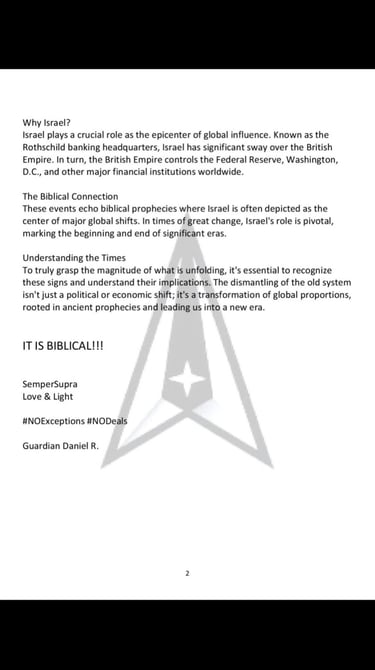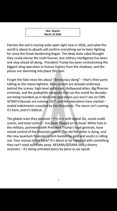 Hi, me again! Doesn't this feel like it can't be happening? It’s exciting to think about the changes happening around us! We are on the brink of transitioning from the US corporation, which has declared bankruptcy, back to a true republic, a concept many of us have longed for.