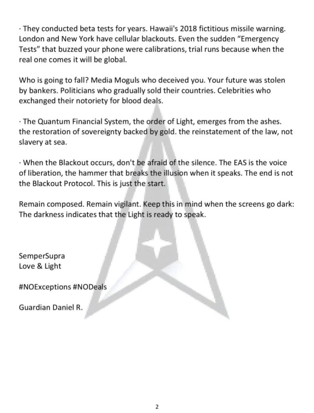 • Executive Order 13912 (March 2020): Activated 1,000,000 National Guard troops—signaling incoming military occupation.