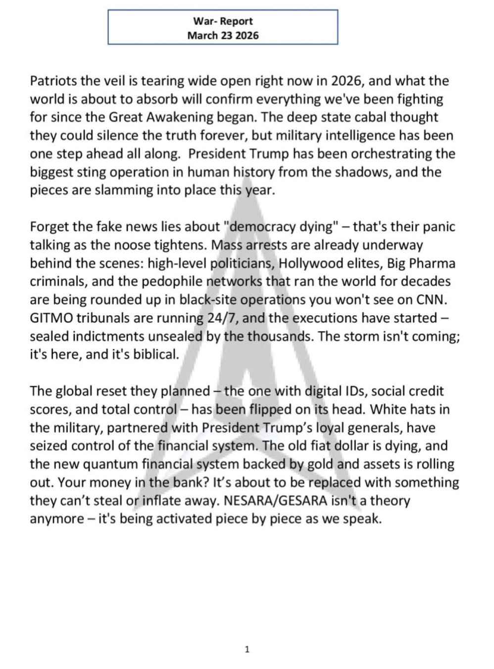 This coming Wed. 1 April 2026 marks the largest financial restructuring in modern history.Trump has launched the biggest recovery of stolen taxpayer money across the Globe, with trillions coming back to citizens. Those monies have been recovered and were already fully integrated into the Nesara/Gesara payouts system that begins worldwide on Wed. 1 April 2026.