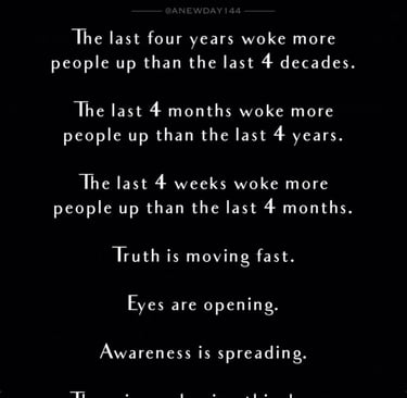 We are collectively uncovering the roots of deception that have kept humanity in ignorance, and as we move forward, the possibilities for a brighter and more equitable future seem boundless. Together, we will embrace this change and emerge stronger than ever!