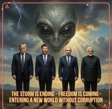 In this historic moment, we stand at the threshold of true freedom. The dark clouds that have loomed over humanity for decades are finally parting. Golden light breaks through as the thunder fades — signaling the end of the long storm and the birth of a cleaner, freer world.