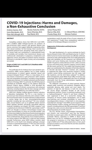 The COVID-19 pandemic response violated core principles of public health, medical freedom, and bodily autonomy, amplifying the devastating effects of SARS-CoV-2 and its modified mRNA biologics/vaccines. The overwhelming evidence of SARS-CoV-2’s gain-of-function origins, coupled with the catastrophic health impacts of modified mRNA COVID-19 biologics/vaccines and the unchecked expansion of next-generation mRNA biologics, paints a chilling picture of deliberate design and systemic harm.