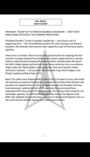 Today, March 16, 2026...Remember, I'm here just like you folks trying to piece all this together! What we do know and are starting to find out is how we have been used and abused, physically, mentally, as it doesn't matter to them! Since birth, they started to make money on us, traded us on the manipulated stock market and so forth...just go back a bit on this site, take a refresher coarse...folks, I realize how difficult this may be, especially if you are deep into your religion, whatever your beliefs is...know that Everything that we have been taught in our lifetime has been nothing but lies, lies, lies, and quite frankly if President Trump & The Military had not won that election, we might just have been in body bags, which was what their evil plan has always been, to get rid of us, and solely for their benefit!!!