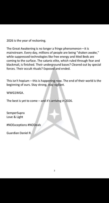 Today, January 21, 2026, And I want to thank all my returning visitor's as well as new visitor's, as everyone is welcome to this website which I actually started one year ago today!!! How time flies! I can’t explain it, but I kind of learned really fast that something fishy was going on in our everyday life, and this was my way of giving back to this amazing event that we are calling The Great Soul Awakening, which has now evolved to The Greatest Wealth Transfer Of Humankind, and we will and are blessed to be a part of this incredible mind-blowing movement going on, not just here in the United States but globally around the world!!!