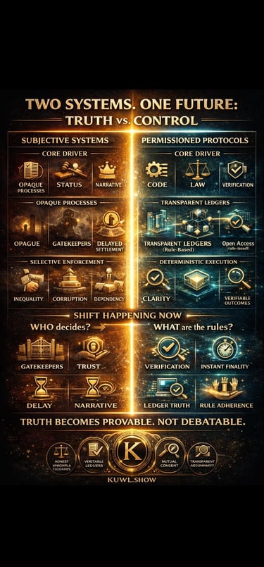 Folks, WOW, things happening at a rapid movement...Awesome!!! So let's continue with another informational post from Rob Cunningham on X, "How Permissioned Protocols for all vs. Subjective Methods for some changes Civilizational Architecture."